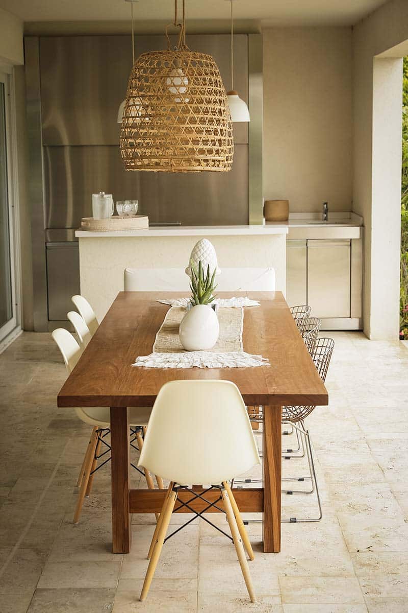 Si contamos con un espacio en la galería para reunirnos en familia, una buena alternativa es colocar una mesa larga. Podemos combinar sillas de diferentes estilos y darle un toque moderno.