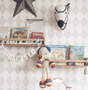 Para decorar las paredes, podemos optar por estampados en beige, un color que nos acerca a la naturaleza y brinda serenidad al ambiente. También es práctico incluir estantes de madera para que los libros de cuentos estén al alcance de los chicos (OleleKids). Una linda idea es colocar una lámpara a pilas para que puedan llevarla a la cama (Gorsh). Sobre la pared se ubicó una estrella colgante (Alegría Hunter Deco), y se armó un espacio para dibujar, con una mesa con sillas de madera en forma de conejos y un almohadón con diseño infantil (Gorsh).