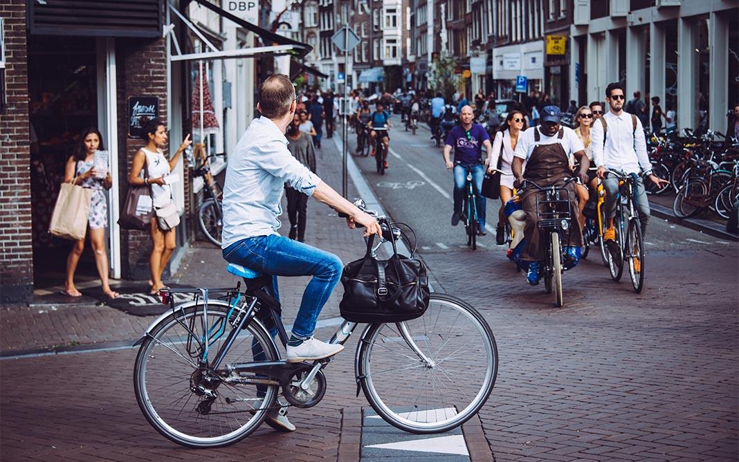Aunque parezca una locura, en Ámsterdam, en las horas pico, hay congestionamiento en los bicicarriles. Al fin, una cuestión básica como que todos no pedalean a la misma velocidad cada tanto hace bajar de la bici a miles al mismo momento, en una especie de serpenteante ballet urbano. Para tener una idea de la dimensión que posee el uso de la bicicleta, las burocráticas estadísticas señalan que, en 2016, había 900 mil rodados y poco más de 800 mil habitantes en la capital holandesa.