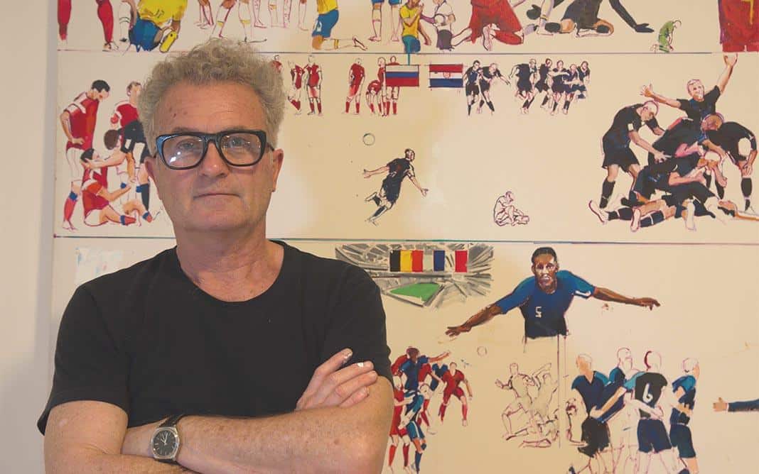 Durante el Mundial de Fútbol, los partidos, las jugadas y los jugadores se convierten en los temas más conversados entre chicos y adultos de los cinco continentes. “Es interesante que se da en simultáneo y en los diferentes idiomas, en general comentando una imagen tomada de la TV. Es uno de los pocos hechos donde la humanidad se reúne frente a un deporte, es el más universal, ninguno genera lo mismo”, explica Rubén Ramonda sobre su motivación para pintar en vivo los momentos más importantes de la Copa del Mundo Rusia 18.