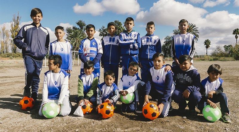 Los chicos de la Escuela de fútbol Cooperativa Caucete (San Juan), otro de los potreros participantes.