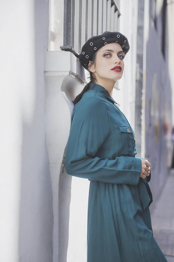 VESTIDO DE INVIERNO Vestido de algodón manga larga (Estancias) y boina con tachas (Yagmour).