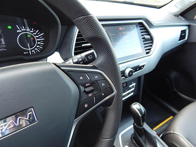 Todos los comandos estรกn a la mano, por lo que no hay que sacar la vista del camino para manejarlos, son fรกciles de accionar y de reconocer. El volante, de tres rayos, incluye controles para audio, telรฉfono y pantalla, ofreciendo ajuste en altura, pero no en profundidad.
