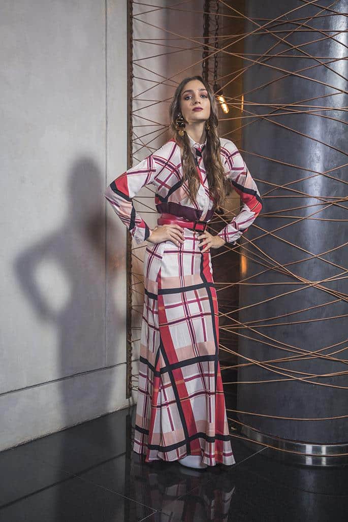Camisa blanca (Riffle), pantalón a cuadros (Las Pepas), cartera suela (Blaqué),
