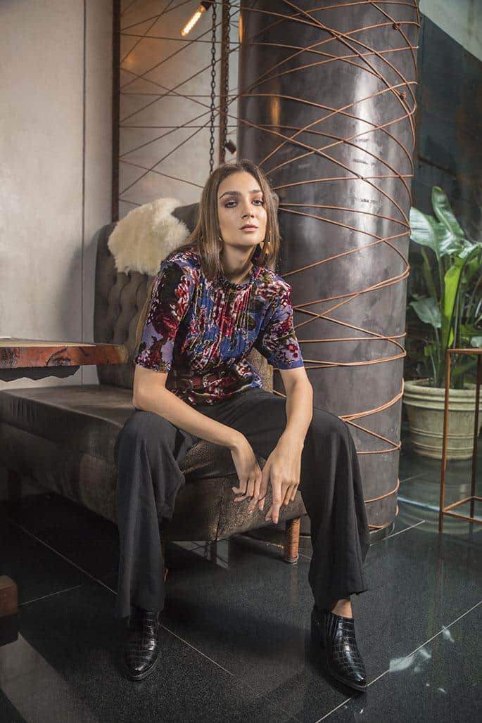 Camisa de terciopelo (Vitamina), pantalón (Perramus) y botinetas (A Pie).