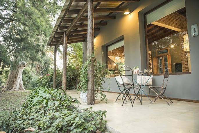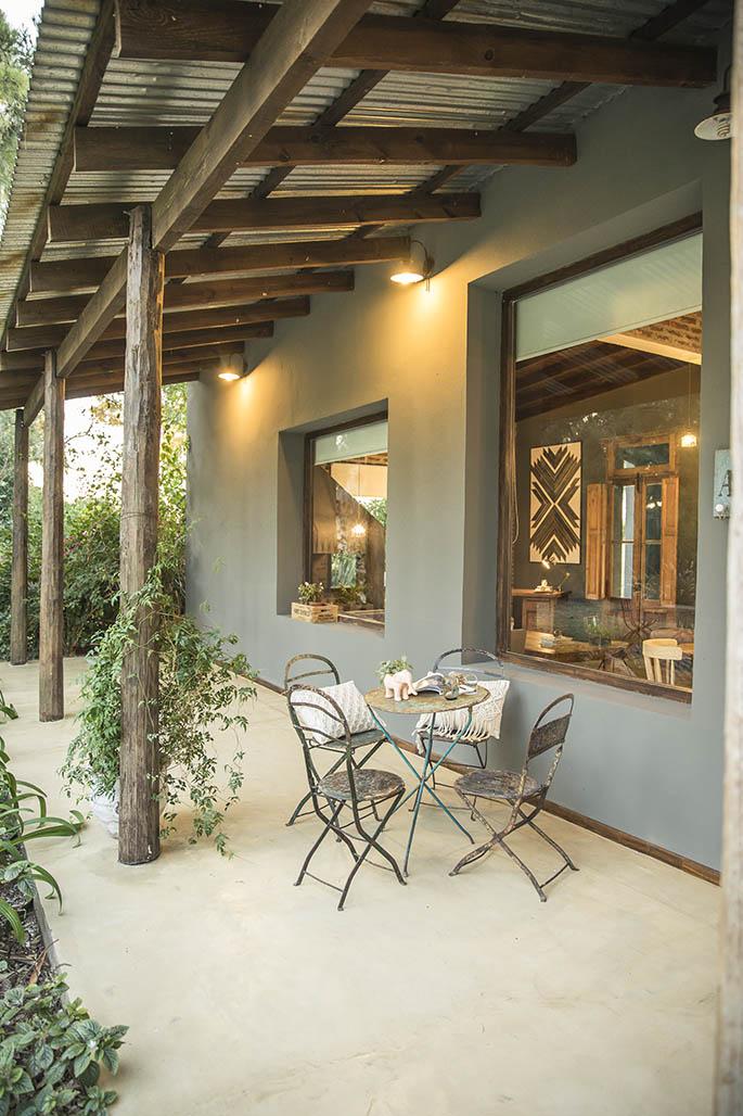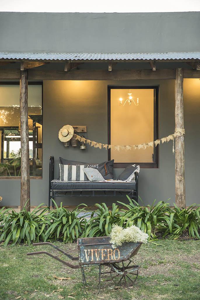 En este espacio nos encontramos con un sector de descanso donde hay un sombrero rústico (Berni.dit) y un sillón de hierro antiguo con almohadones de jean (Sol PalouDeco).