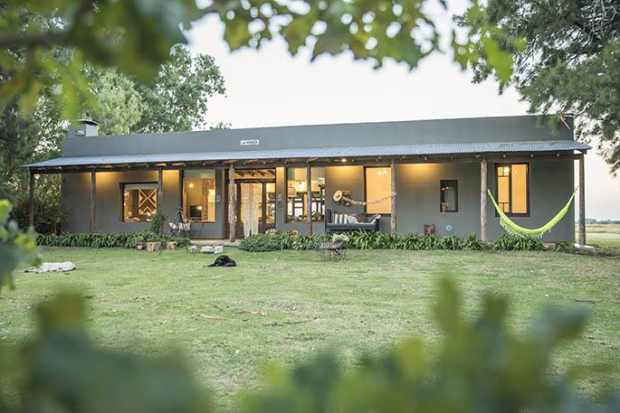 Para integrar un patio o una galería con el exterior, es recomendable elegir plantas bajas que no tapen la vista y que generen la unión perfecta entre ambos. En este caso se utilizaron agapantos, que tienen hojas con forma de cintas que mantienen el verde todo el año, y en el verano florecen con varas azuladas que, sin duda, enmarcan la casa. Más lejos, una carretilla vieja con flores de chilca da un aire silvestre.