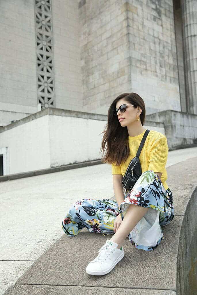 Zapatillas (Adidas), remera de hilo (Desiderata), pantalón con tajo (Rimmel), lentes de sol (Fleur) y bandolera con cierres (Blaqué).