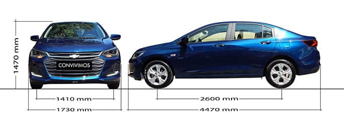 El Onix Plus, en la versión superior, Premier, reemplazante del Prisma, es 194 mm más largo, llegando ahora a los 4474 mm. Estéticamente ofrece un diseño con los nuevos lineamientos globales de la marca, con trazos más rectos, capó plano y líneas de expresión bien definidas en los laterales. El frente luce una parrilla inferior de generosas dimensiones y una superior auxiliar, mientras que atrás los faros sobresalen del cuerpo como sucede con su hermano mayor el Cruze, del que toma varios rasgos.