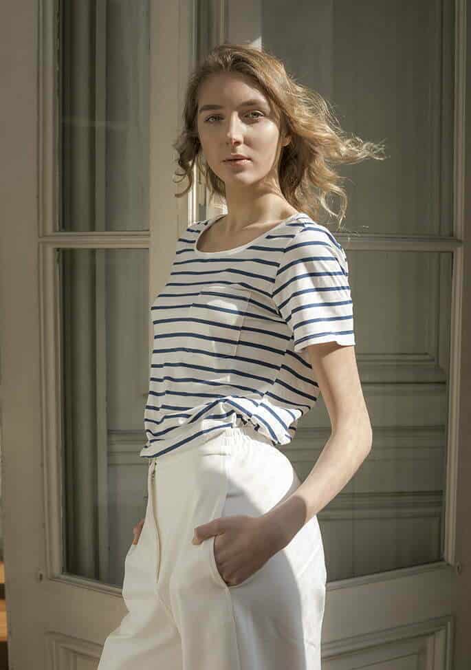 Remera de algodón a rayas (Yagmour) y pantalón de tiro alto (Las Pepas).