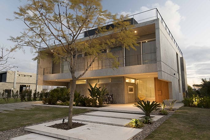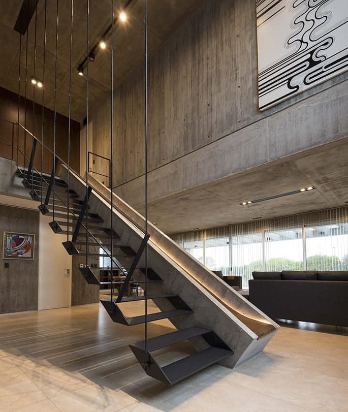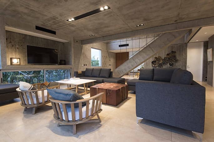 La estructura es casi en un cien por ciento de hormigón visto, con la textura de la madera, que se usó de encofrado. Pocas paredes blancas. Una arquitectura monocromática que da la libertad de jugar con el color a través del interiorismo. El estilo es muy moderno, despojado y hace referencia al movimiento llamado “brutalista” de los años 50, en el que se utilizan los materiales en su estado puro.