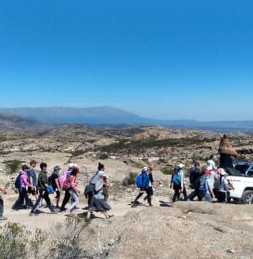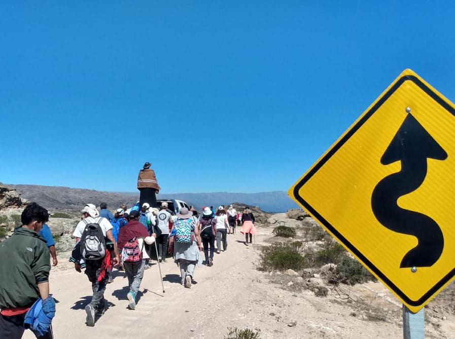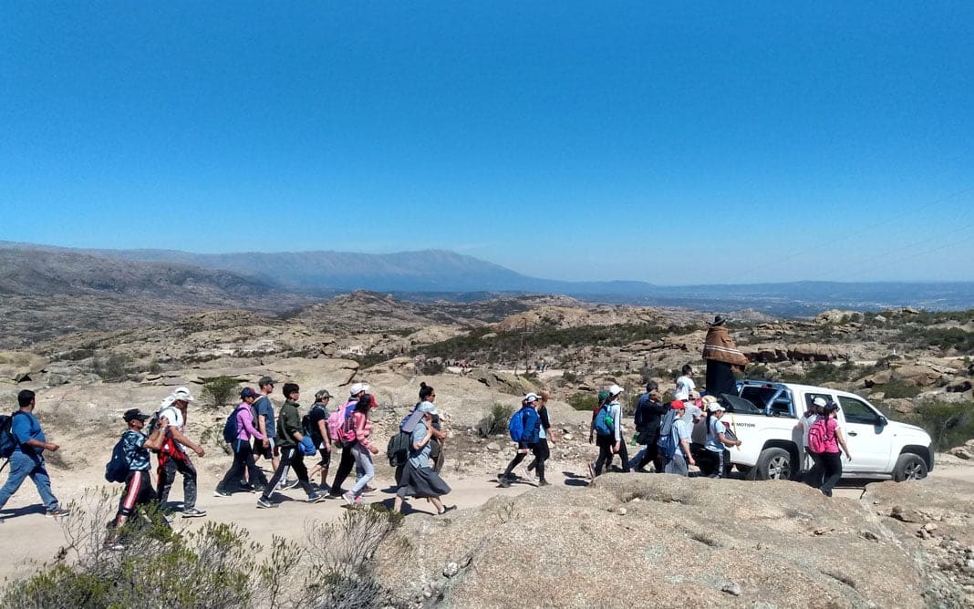 El Camino del Peregrino tiene 28 kilómetros y conecta Giulio Cesare con Villa Cura Brochero. Son al menos seis horas de marcha. La salida es bastante rápida y enseguida la fila india se interna en el paisaje. De lejos, parecen hormiguitas de colores.