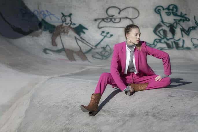 Blazer y pantalรณn sastrero (Portsaid), camisa de poplรญn (Melocotรณn), polera de algodรณn (Ayres), botas texanas de cuero (Oggi) y aros redondos (Mai Solorzano).