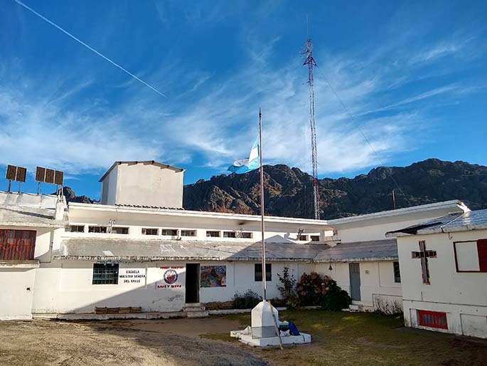 La Escuela Albergue Nuestra Señora del Valle tiene 54 años y es la única en 30 kilómetros a la redonda del cerro Los Gigantes. En la actualidad, asisten 39 alumnos entre nivel inicial, primario, secundario y modalidad de adultos. No abonan cuota ni matrícula, porque los gastos de funcionamiento de la escuela y el albergue son financiados por el Estado provincial y los voluntarios de la Fundación Manos Abiertas, de quien depende desde 2009.