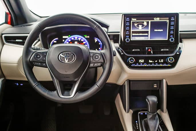 Desde el nombre ya sabemos que estamos en presencia de un Corolla y adentro esto se distingue más, ya que todo el frontal es el mismo del hermano sedán, por lo que como todo Toyota, es práctico, sin estridencias y muy confortable, con cuidadas terminaciones y plásticos duros como para darle un toque más rústico. Aquí cambia la posición de conducción, ligeramente más alta, y el panel de instrumentos se conecta con las terminaciones de las puertas. En la parte posterior hay notablemente más espacio vertical debido a que el techo no ha caído después de la columna C, con muy buen espacio para las piernas.