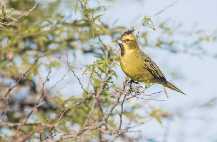 Se trata de cardenales amarillos, una especie que habita en Brasil, Uruguay y Argentina, con poca presencia en los primeros dos, y estรก en peligro: se estima que quedan entre 1000 y 3000 individuos de esta especie en total.