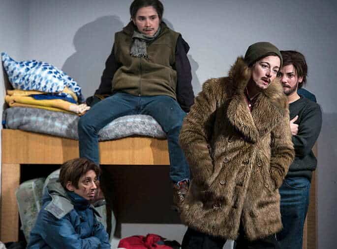 Petróleo es la quinta creación del grupo Piel de Lava, que además de Valeria, conforman Elisa Carricajo, Pilar Gamboa y Laura Paredes. Juntas escriben, dirigen y actúan desde hace veinte años, siguiendo el mismo método: “improvisando, investigando, probando, jugando”. Así surgió esta pieza, cuando se preguntaron de qué no habían actuado nunca y todas respondieron “de hombres”. “Enseguida dijimos ‘que sean trabajadores’, pues es el lugar arquetípico donde son colocados; luego apareció la idea de que fueran petroleros, porque nos gustaba la metáfora de un chabón perforando la tierra para sacarle cosas”, recuerda.