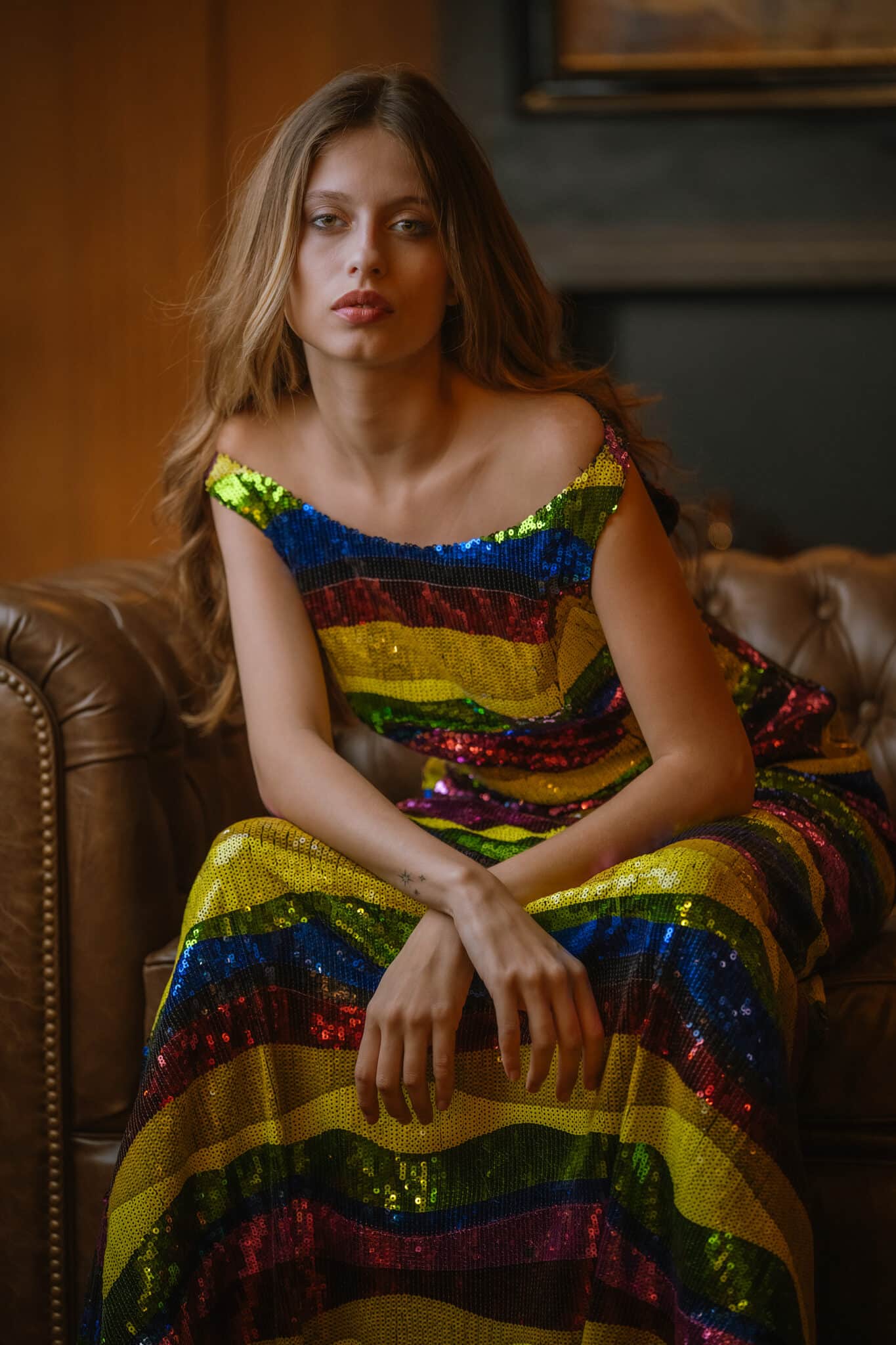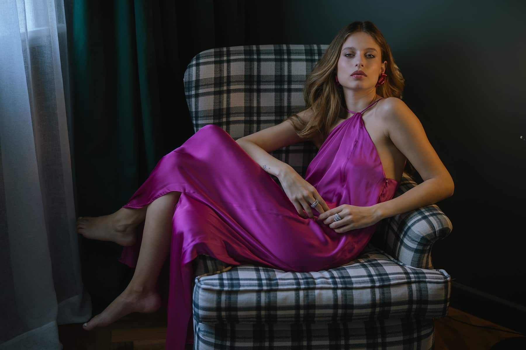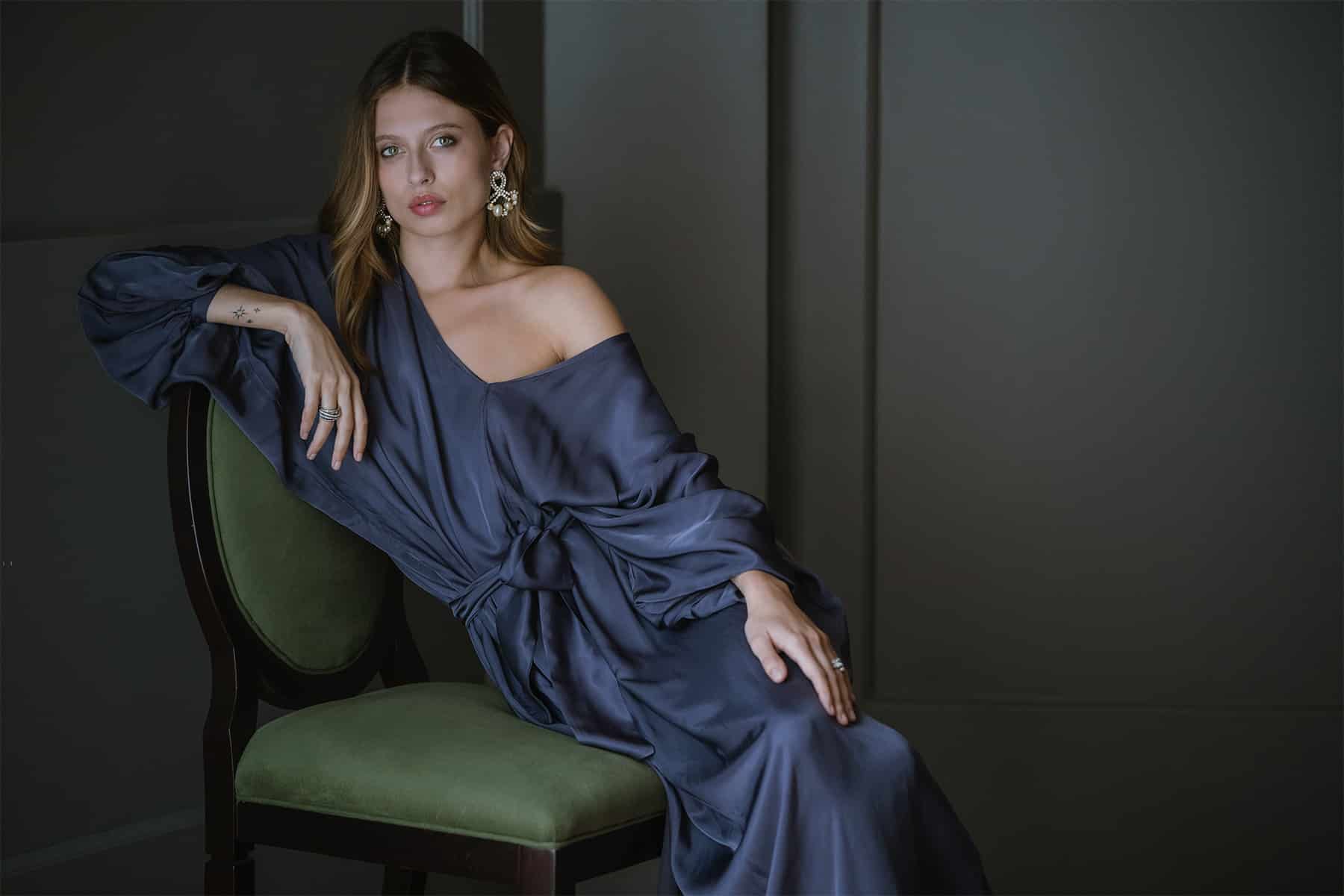Top con tiras bordadas y minifalda con cola (Benito Fernández),