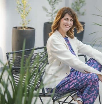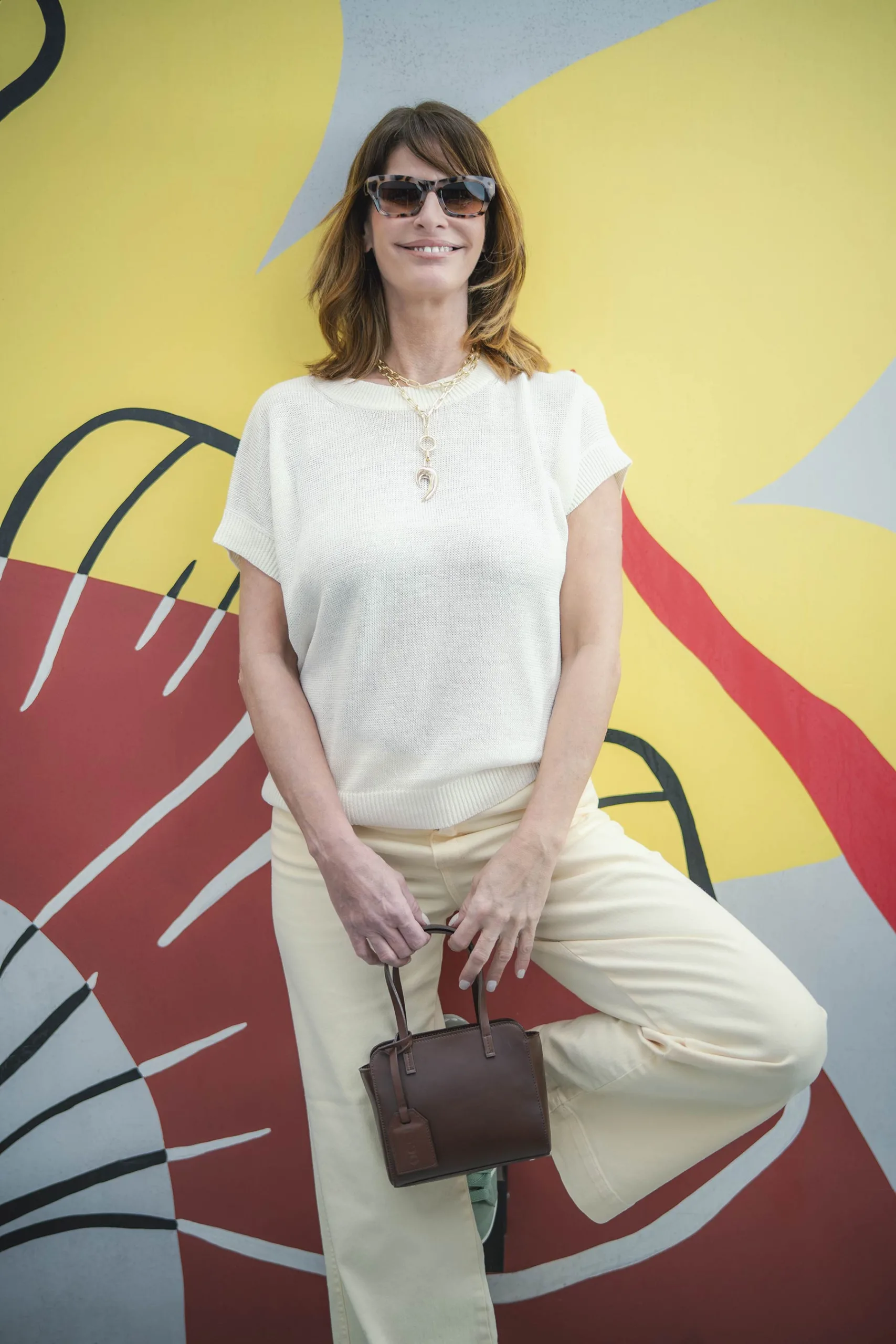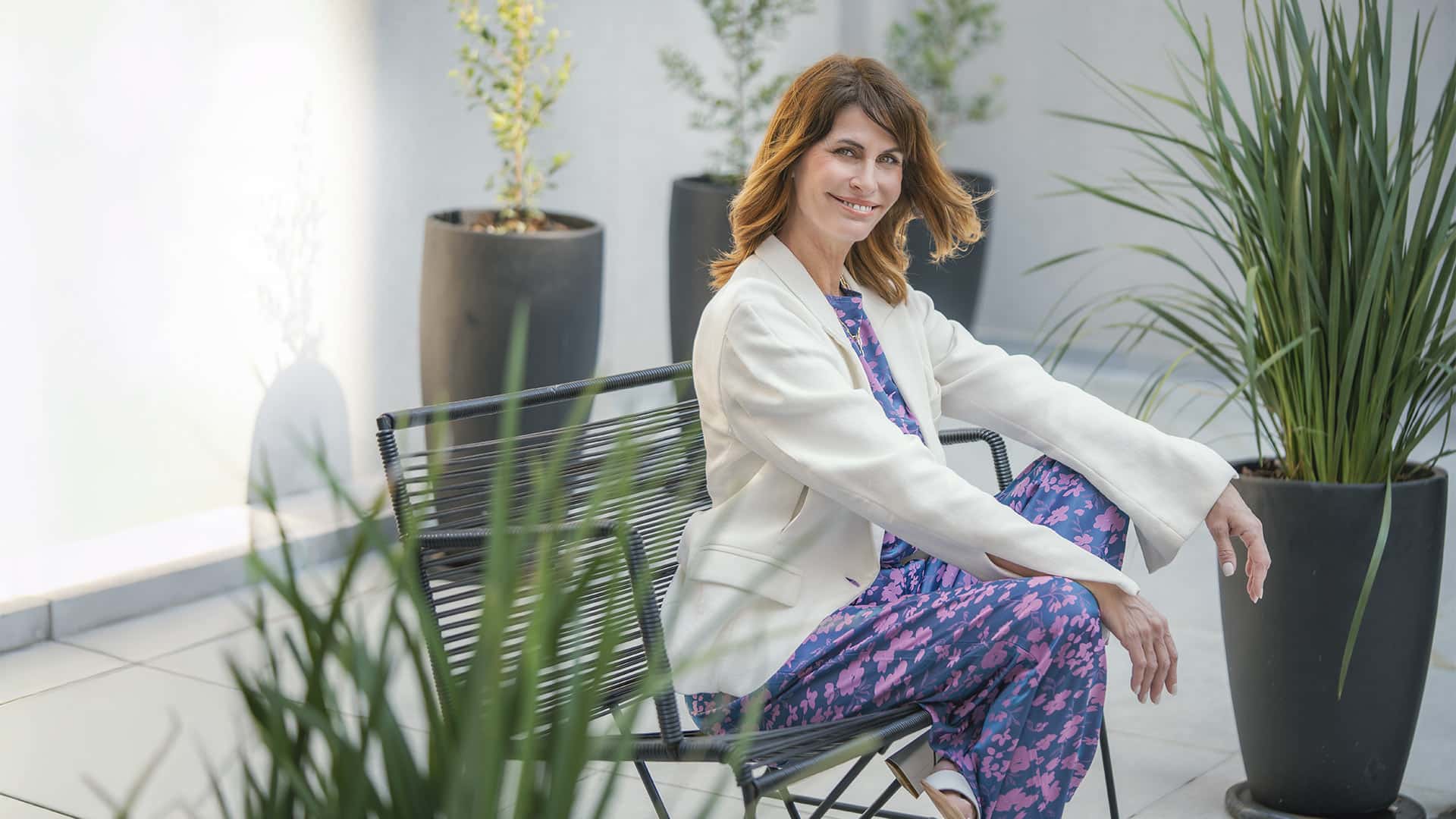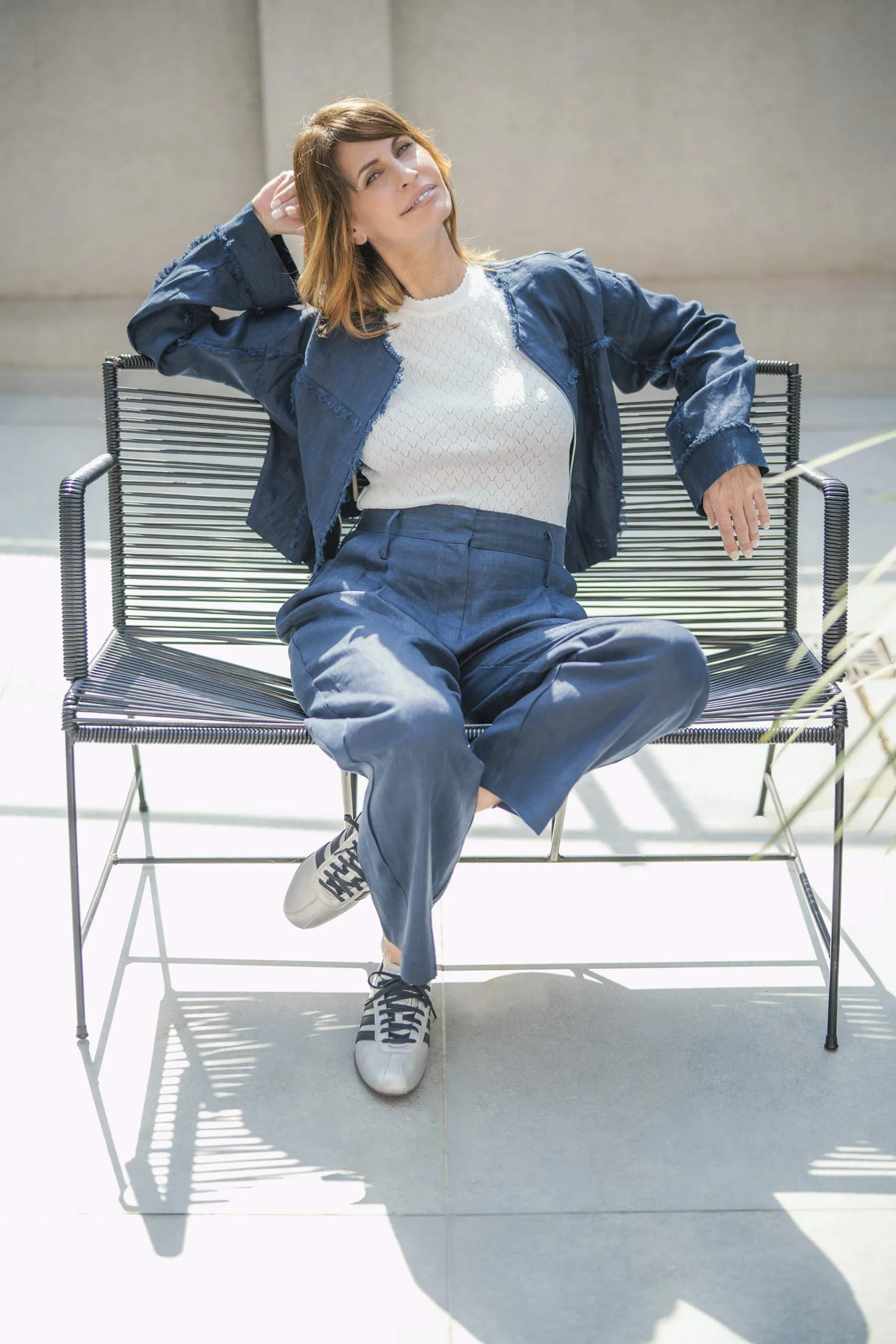 Blazer de lino (Sadaels), musculosa y pantalón de seda estampada (Las Pepas). (Foto: Nico Pérez / Estilismo: Lula Romero).