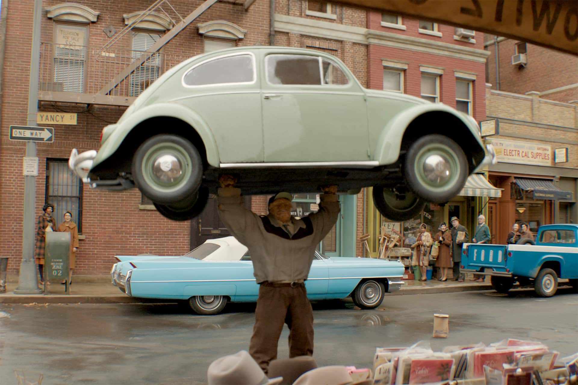 En pantalla, prácticamente todo lo que hace el icónico H.E.R.B.I.E. sucedió de forma física. El robot cobró vida tras 16 semanas de trabajo, desde su diseño hasta la producción misma. Con una estatura de casi un metro – y elaborado con una resina impresa en 3D, láminas de acrílico y aluminio- H.E.R.B.I.E. era operado por cinco personas en el rodaje, quienes manejaban su cabeza, ojos, boca, brazos, manos y desplazamiento a través de controles remotos y batería. Además, se construyó una versión más simple para alcanzar espacios de difícil acceso en los sets.