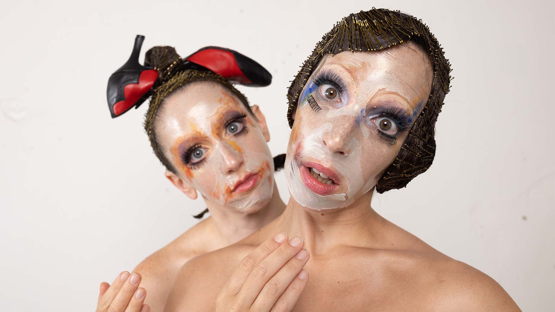 Una obra de danza-teatro que toma a dos maniquíes para explorar los márgenes entre lo vivo y lo inerte. Un piano acompaña la escena.