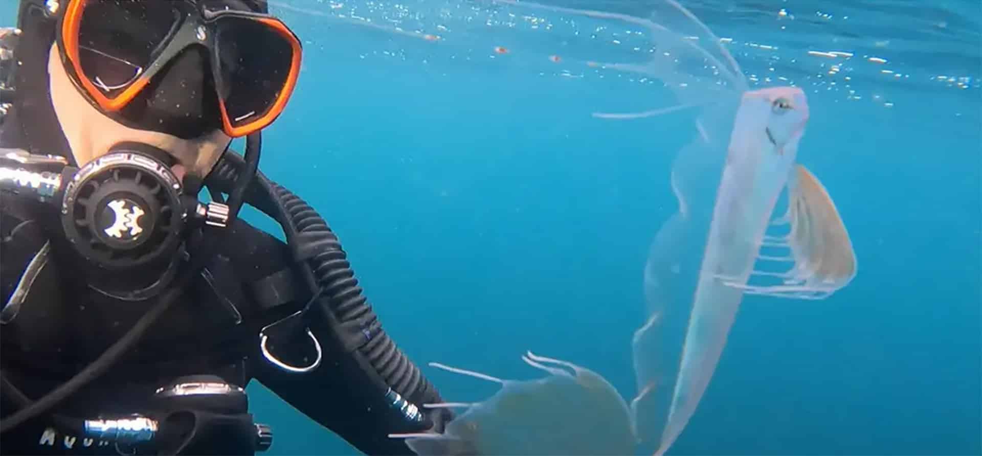 El agua cristalina permitió a Judah explorar con claridad. A unos 4,5 metros de profundidad, divisó una figura plateada y ondulante que se desplazaba paralelamente a la costa. “Vi una especie de cuchilla plateada ondulante […] Le dije a mi esposa: ‘Hay algo increíble aquí’”, relató el buceador en una publicación en Facebook. El pez demostraba una notable habilidad para mantener su perfil más estrecho al observador, girando cada vez que Judah intentaba captar su vista lateral. “Me siento muy honrado de haberlo visto”, agregó.
