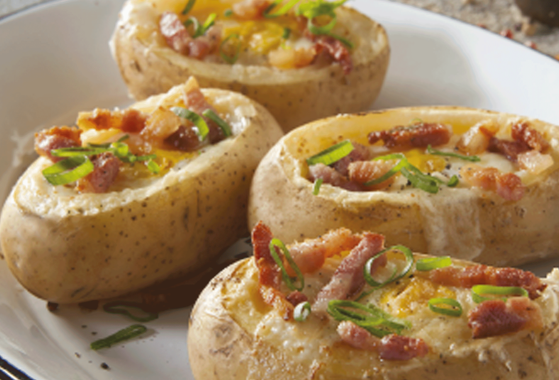 Untar el interior de las papas con un poco de manteca, colocarlas sobre una placa y rellenar con el puré.