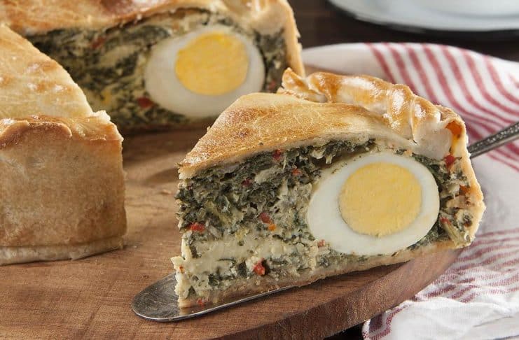 Volcar el relleno, hacer unos huecos y colocar los huevos duros.