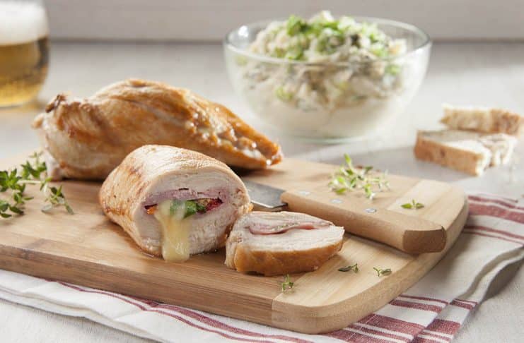 Rellenar con el rollo de jamón y cerrar con un palillo.