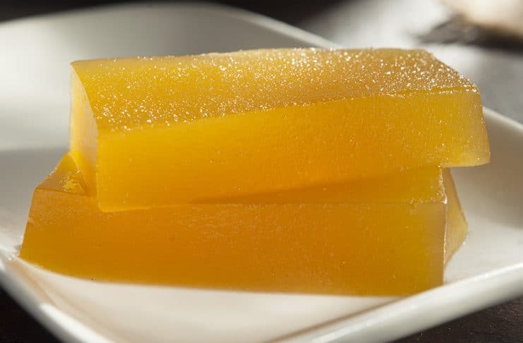 ย โข Si solo se va a utilizar el dulce para comer de postre o acompaรฑar quesos, se puede usar gelatina sin sabor en lugar de agar agar. En este caso, hidratar 15 g de gelatina en 75 cc de agua, y agregar al almรญbar cuando estรฉ tibio, para que se logre disolver y unificar. Esta gelatina no debe hervir, porque si no, no gelifica, a diferencia del agar agar.