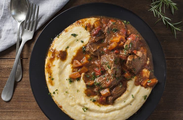 Servir la polenta bien cremosa con el estofado, terminar con perejil picado.