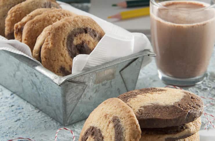 Dividir la masa en dos partes y a una agregarle el cacao.