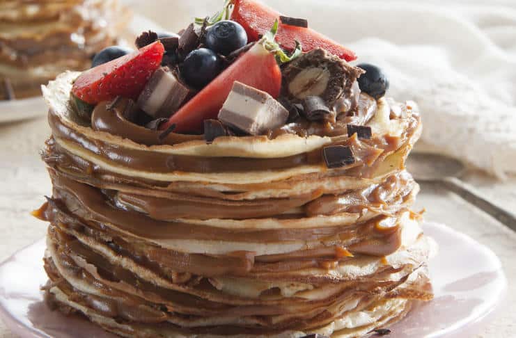 Formar las torres de panqueques rellenando con el dulce de leche.