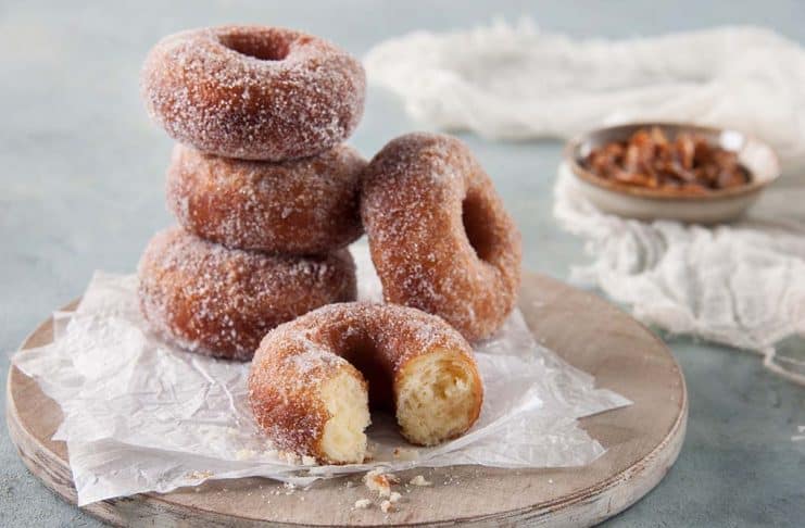 Calentar el aceite a 180ยบ y freรญr las rosquillas hasta dorar de ambos lados.