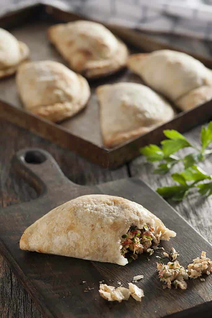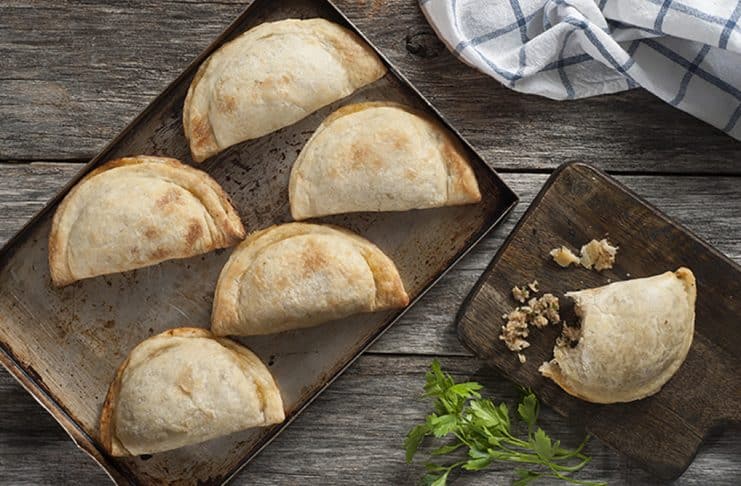 Disponer una cucharada de relleno sobre cada tapa de empanada y cerrar sin repulgar, solo presionando. Colocar sobre placas apenas enmantecadas.