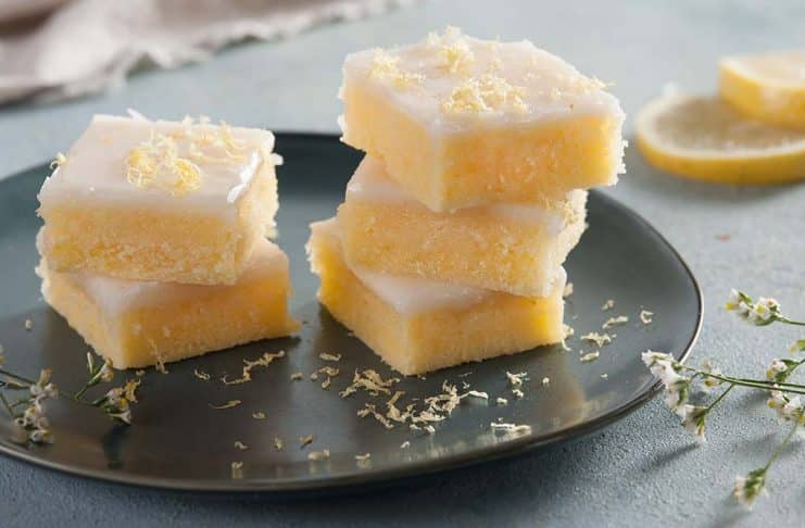 Retirar el bizcocho del horno y baรฑar con el glasรฉ en caliente. Espolvorear con ralladura de limรณn.