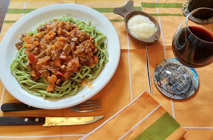 Servir en una fuente con la salsa bien caliente. Acompaรฑar con queso rallado y un rico vinito.