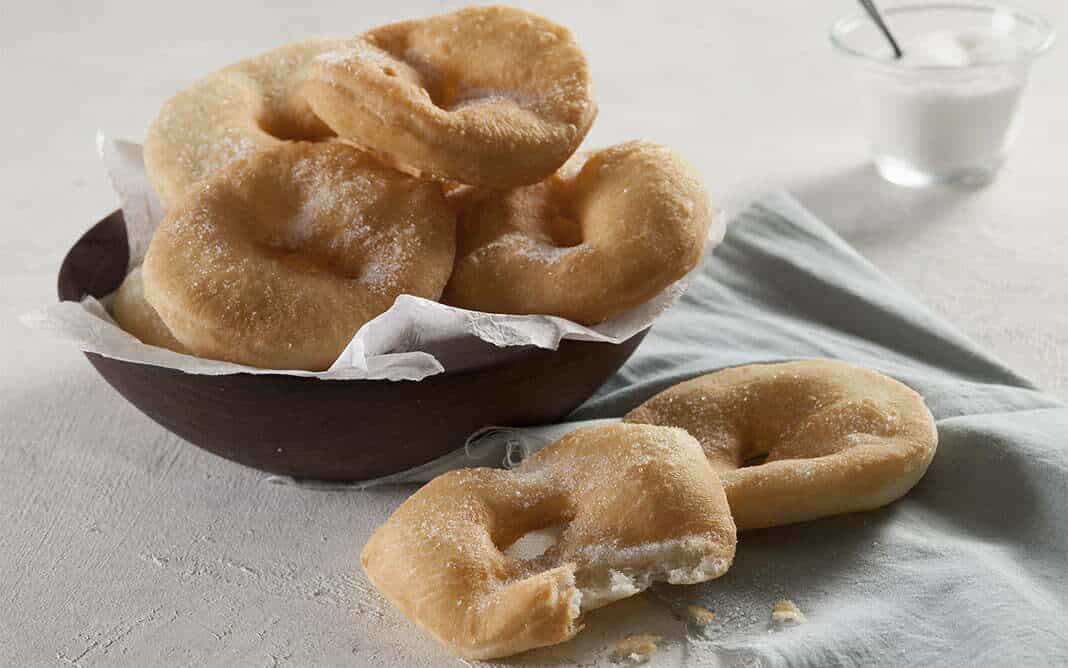 Freír en aceite no muy caliente, dando vuelta al final de la cocción. Escurrir sobre papel absorbente y, si se desea, espolvorear con azúcar.