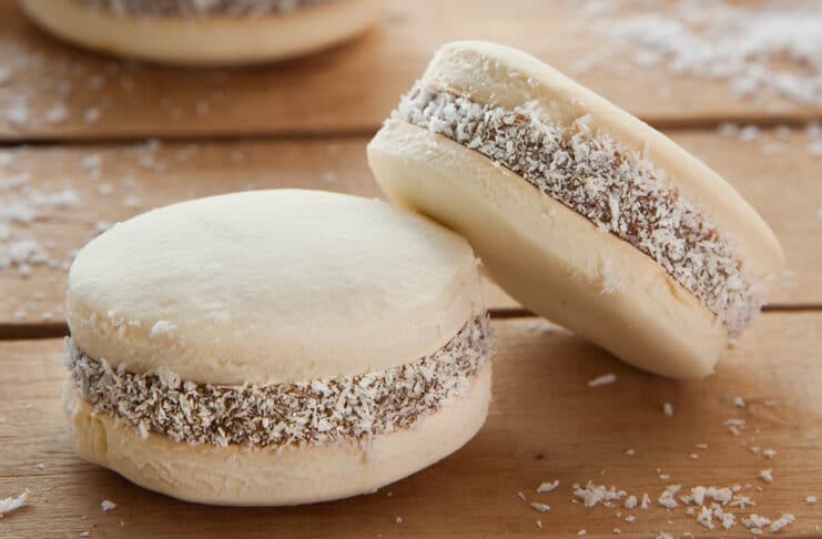 Una vez frรญas, unir las tapas de a dos con el dulce de leche, y adherir el coco en los costados.