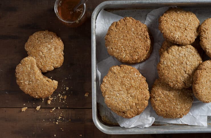 Formar bolitas del tamaรฑo de una nuez, colocarlas sobre una placa con papel manteca enmantecado o plancha de silicona, separadas entre sรญ. Aplastar cada bolita con una cuchara o la palma de la mano.