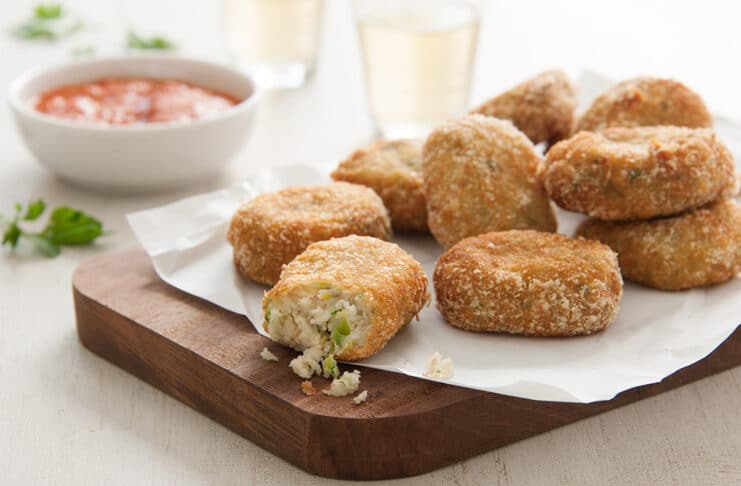 Formar las croquetas, colocar sobre placa con papel antiadherente y enfriar.
