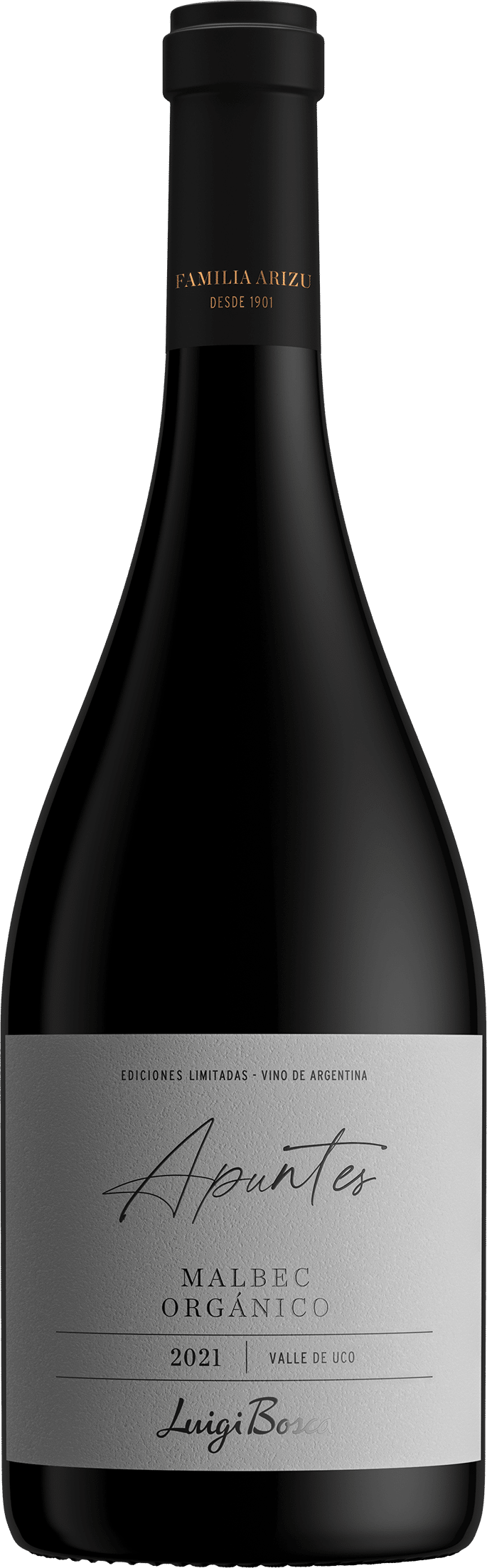 Es el primer vino certificado orgánico (Letis) de la familia Arizu. Un Malbec de buen cuerpo, jugoso y con texturas incipientes. Algo maduro en su mensaje, con tonos herbales, pero generoso en su fruta, casi madura. De trago amplio no muy profundo y con ciertas especias que aportan profundidad. Voluptuoso y expresivo, para disfrutar hoy o en los próximos años.