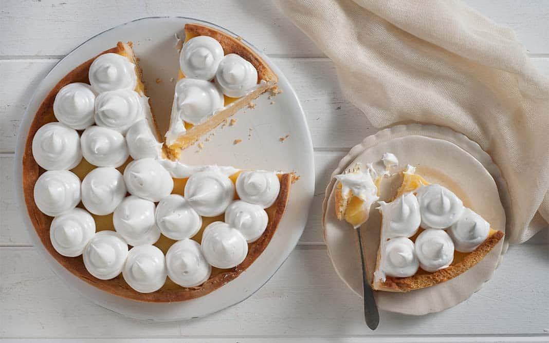 Colocar el curd sobre la masa cocida y terminar con el merengue formando picos.