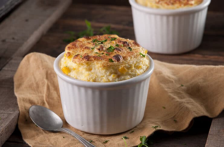 Volcar la preparación en moldes individuales, aptos para horno, previamente enmantecados y espolvoreados con queso rallado. Llenarlos hasta ¾ partes.