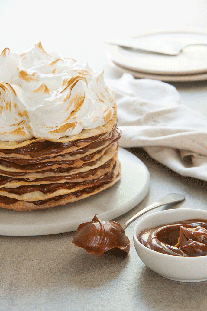 Armar el Rogel intercalando capas de dulce de leche y masa.