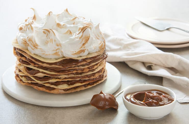 Armar el Rogel intercalando capas de dulce de leche y masa.