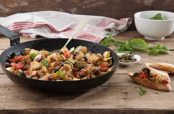 • La caponata es un clásico de Sicilia. Se presenta como aperitivo, pero también se utiliza como guarnición para diferentes carnes.
