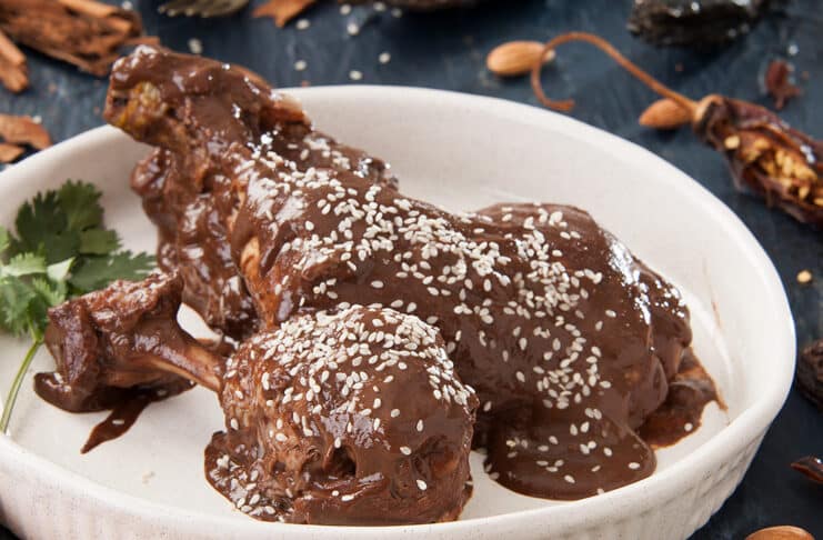 • Hay muchas recetas de mole, según familias y tradiciones de las regiones. Pero siempre en común encontramos las especias, los chiles, los frutos secos y el chocolate. Algunos le agregan azúcar de panela al final hasta que quede levemente dulce.