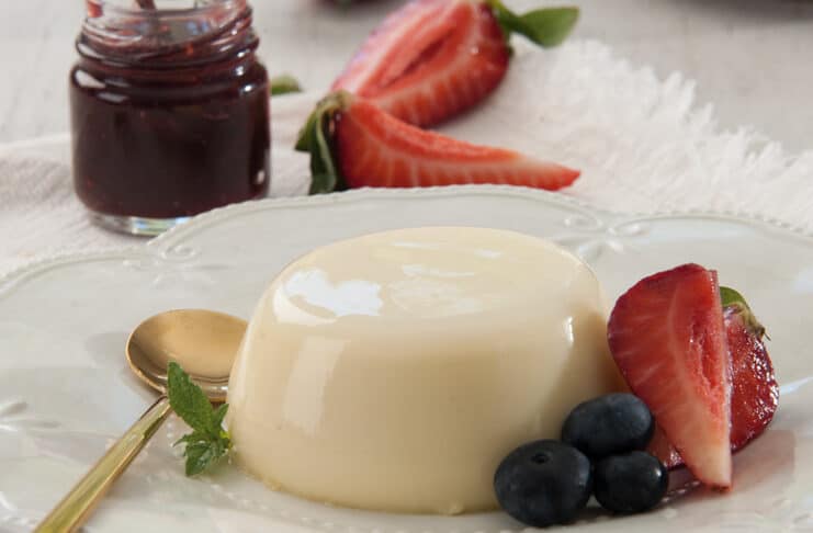 Volver a calentar un poco la mezcla de leche y crema, y volcar sobre la gelatina, mezclar bien y poner en moldecitos de flan, limpios. Enfriar.