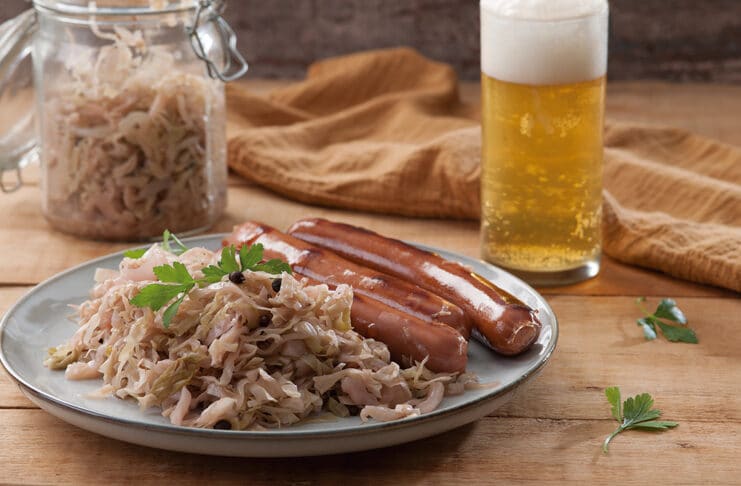 • Se pueden presentar las salchichas cortadas, sobre el chucrut.